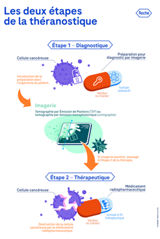 Une même molécule permet ainsi, lors de l’étape de diagnostic, de détecter les cellules cancéreuses, mais aussi d’identifier les patients qui pourront bénéficier du traitement. Si l'imagerie est positive, cela signifie que le patient exprime les récepteurs-cibles des traitements et qu'il est donc éligible à l'étape thérapeutique. Lors de cette dernière, la même molécule marquée avec un isotope thérapeutique (émetteur ß- ou α par exemple) permet d’irradier les cellules cancéreuses en épargnant les tissus sains.